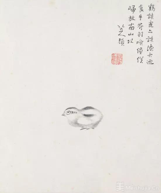 (3/4)《山水花鳥冊》第一開,《雛雞》,朱耷,清代