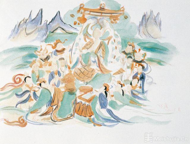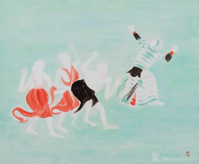 “用無不神而法無不貫;理無不入而態無不盡”,武藝的敦煌系列用“意臨”的方式演繹著隋唐五代的文化遺風,古人筆法今人再現,作品的完備和即興同在,“敦煌”與“個人”形成宏大的互文關系。武藝提及,風沙過后的敦煌有種虛無感。正是此番感慨,他筆下的敦煌少了宗教題材的厚重感,加入了空氣中才有的稀薄感。刪繁就簡、法度內斂,畫面空靈具有超越時間的美。師古人、師自然,而得其心源,武藝就此開辟了筆墨不隨時代的另一番獨特的當代繪畫風格。