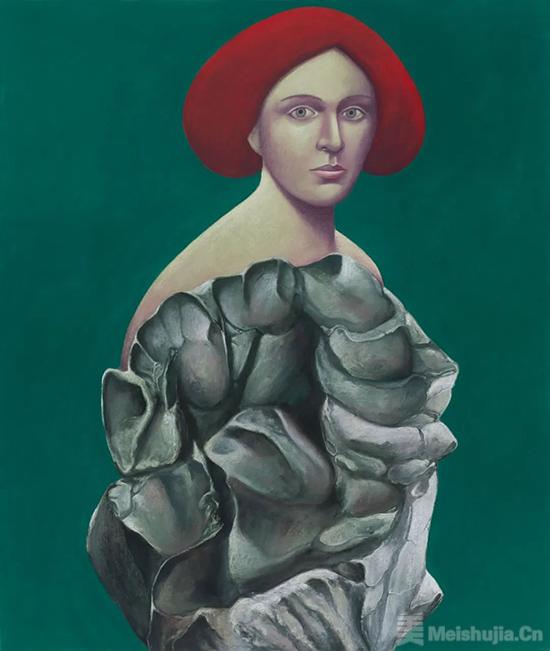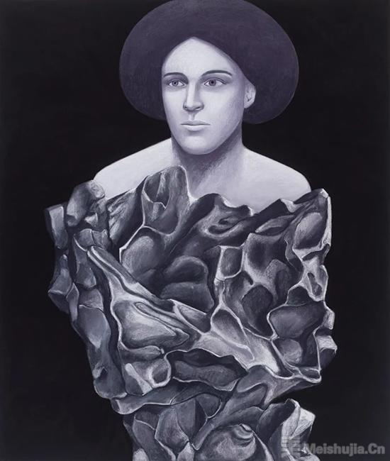 除了「紅色森林」之外,帕蒂的全新肖像畫,描繪了一系列身披外太空石的人物。這些石的外觀令人聯想到中國天然石雕,或是傳統文人石中的金屬元素。帕蒂以一種奇特而復雜的形式描繪這些巖石的構造,石間的大量裂縫代表著所受的侵蝕,與承載著石頭的人類形成鮮明對比。
