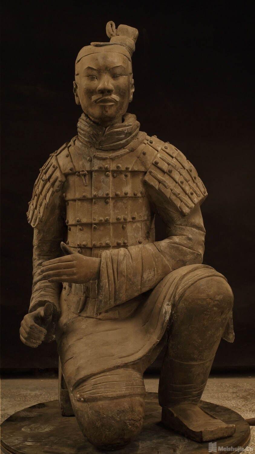 本次展出的兵馬俑創日本史上最大規模,共陳列戰國至漢代的兵馬俑36件,其中秦始皇陵兵馬俑10件,囊括將軍俑、軍吏俑、騎兵俑、跪射俑、馬俑等類別。其他重要展品還包括茂陵鎏金青銅馬、中滋青銅鼎、「王精」龜鈕金印等。