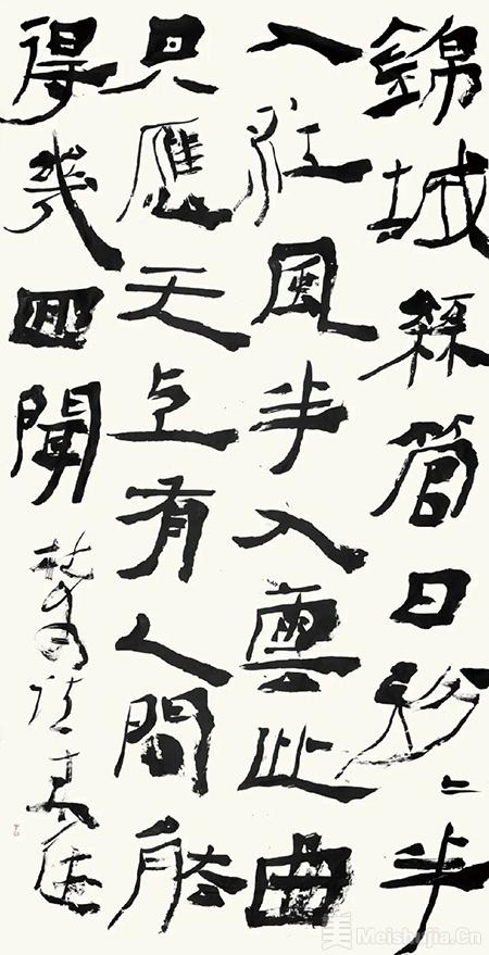 溯余書道之源,實肇于塞上。觀巖畫之樸拙,參夏文之嬗變,乃悟筆鋒當破繭而出:非止摹形追韻,貴在吞吐萬象;非求標異立新,重在洞徹漢字之美。巴山蜀水,育我血肉之軀;故土難離,思念漸濃。賀蘭風雪,成我金石之志。故每揮毫,如對蒼茫,一點一畫,皆應山河之許,一枯一潤,均循天地靈氣。