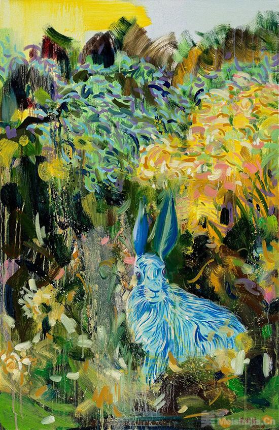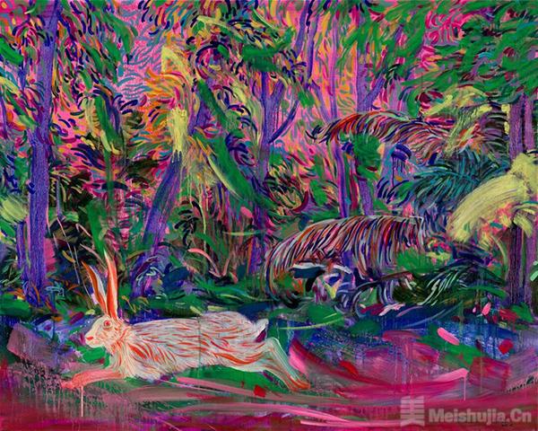 正如展覽“未盡之岸”,強調的是一種始終在突破和嘗試的創作狀態,黃琳珺近年的創作不斷觸及自己的“彼岸”——無論是形式的、媒介的、還是觀念的。她以具象元素為起點,如叢林、兔子、海浪,卻通過超現實的色彩、表現性的筆觸和形象背后的文化隱喻,將它們推向意義的未知領域。