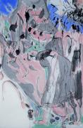 李曉柱的繪畫從1980年代開始,接續人物畫的漫長譜系,保留筆墨韻致,而加以大膽的現代性的變形,就是以欲望和寡淡的悖論感知拉長女性形體,如同馬蒂斯與常玉,并且置于男女的對峙與時代生命經濟的反諷之中。進入21世紀的彩墨系列《桃花渡》則把長型女性形體融入到桃花的紛紜之中,把具有現代單色繪畫感的暗淡黃色向著性感的紅色轉換,讓妖艷與鬼魅的色彩融入變形的形體,其琉璃閃亮的質感,把魔性、物性、還有自然的生長性,完美融合。來自于水墨與彩墨的感性融合力量,帶來了極端的絢爛與極致的妖嬈,徹底激活了來自于生命母體的柔和感知,讓藝術家可以接著實施更為徹底地轉向,即以水性丙烯顏料來畫帶有鮮明中國古典文脈主題的荷花與蓮花,但卻已經面目全非,因為記憶女神需要喚醒個體與文化的深度感應。