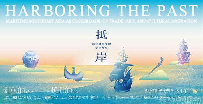 本次展覽以「抵岸」為引,寓含歷史上文化「移動」與「抵達」的雙重意涵,集結臺北故宮博物院及多家博物館的收藏,分「候風之港,連海之帆」「豐饒之島,靈性之器」「競逐之海岸,并立之文明」3個篇章,追尋海洋東南亞的過往。