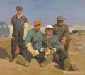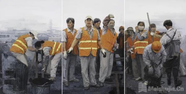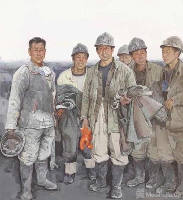 其作品最動人心魄的,是對平凡生命的平等凝視與尊嚴賦形。他的畫筆既聚焦城市化進程里汗濕工裝的建設者,也停駐邊地高原上被風沙雕琢的面龐:風霜刻入的皺紋被視作生命的年輪,塵土覆蓋的手掌被賦予勞作的榮光,就連休憩時遙望遠方的沉默,都被定格為一種莊重的生命儀式。正是這份不帶濾鏡的真誠,讓每一個平凡身影都在畫布上獲得了超越時間的重量。