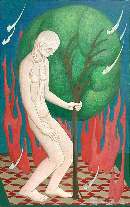 傳承與改變是當代的議題,“當代”這個詞,又歸屬每一個時代。油畫技術從中亞普及至歐洲乃至世界已有近千年,這種古老技藝在曾經的“當代”,像坦培拉的接替者,起初人們依舊沒有忘記那些對神性的精神追求,依舊描繪著無我狀態下的神靈,但伴隨著文藝復興的來臨,我們對神性的定義開始了轉變 但追求沒有變。繪畫藝術從具象到抽象,從天堂到人間,從祭壇畫到超現實主義,始終是強調內在思考和關注當下體驗,這個過程不僅是繪畫史發展的過程,也是社會人文學發展的過程,更是人類認知變化的過程。