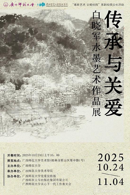 本次展覽共展出白曉軍先生近年水墨作品40余件,作品注重山水筆墨語言的建構,具有較強的學術價值,體現出白曉軍先生在山水畫領域的創作積累。展覽為傳播中國傳統文化藝術精神提供了生動的個案,為山水畫創作教學工作注入了新的面貌,同時使廣西師范大學關心下一代工作呈現出充滿關愛的新格局。