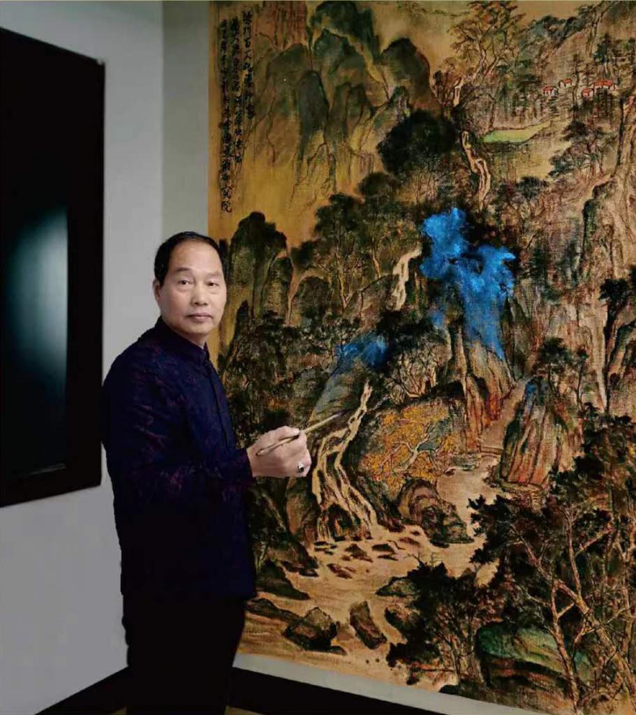 “除了自身的興趣,愛人的支持也很重要,我去采風的時候她一直相伴左右,讓我很安心?!闭怯辛思业陌捕?,他能一邊追尋藝術,一邊深入生活,將筆下青綠賦予鮮活的時代風貌,使新時代的活力在其間蒸騰。值得一提的是,這次,徐樹康突破了傳統的宣紙為底,而選擇在可長時間保存的麻布上創作巨幅國畫,麻布畫不易損壞、變質,但同時不易著色,最多的時候需要渲染10余次。在同行看來,“徐樹康不僅在作品尺幅上有突破,還在畫的材質上別具一格?!?