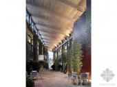 設計強調干凈的元素形式,自然材料的使用使她的建筑與周圍景觀融合