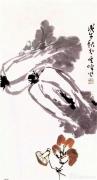 王雪濤(1903-1982),河北成安人,中國近現代花鳥畫家。王雪濤所畫的題材廣泛,構思、構圖精巧,形似神俏、富有筆墨意蘊。他的花鳥蟲魚,刻畫細致入微、雅致傳神,鮮活多姿,生動可愛,情趣盎然。他畫的白菜(如上圖),兩顆菜的勢安排得靜中有動,非常靈巧,用色反其道而行,菜葉用水墨勾勒渲染,背后襯景的菊花葉用綠色畫出,反倒是凸顯一種純凈感,水墨層次分明的菜葉,寥寥數筆葉脈恰到好處,功力畢現。