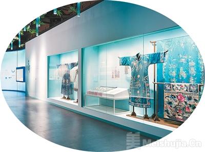 第三單元“世間無限丹青手”匯聚了青色織物和青綠山水畫。青色作為一種美學符號,被歷代藝術家賦予了無盡的詩意與浪漫。