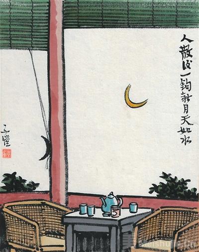 之所以是“古詩新畫”,在于豐子愷在研讀古代詩文時,真切感受到其穿越時間的魅力。宋代蘇軾提出“詩畫本一律”之說,明確了詩畫相通的理論。豐子愷在《畫中有詩》自序中談道:“余讀古人詩,常覺其中佳句,似為現代人生寫照,或竟為我代言。蓋詩言情,人情千古不變,故好詩千古常新。”就像其成名作《人散后,一鉤新月天如水》,就源于宋代詞人謝逸《千秋歲·詠夏景》中的最后一句。