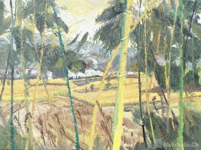 我出生于安慶桐城市,自幼就喜歡畫畫,家鄉四季在視覺感知中呈現為變幻的色彩交響。誠如郭熙《林泉高致》所言:“真山水之云氣,四時不同。春融怡,夏蓊郁,秋疏薄,冬黯淡,盡見其大象,而不斬刻之形,則云氣之態度活矣。真山水之煙嵐,四時不同。春山澹冷而如笑,夏山蒼翠而如滴,秋山明凈而如妝,冬山修淡而入睡。畫見其大意,而不為刻畫之跡,則煙嵐之景象正矣?!惫糯娜巳后w依托深厚學養與藝術感知力,探究藝術本質、規律及表現技法,既構建豐厚的繪畫理論體系,亦通過個人實踐推動藝術風格的迭代更新。而我的風景油畫創作嘗試通過厚重的油彩去捕捉這些瞬間的光與影,將那些無法言說的情感定格在畫布上,讓它代替我述說對這片土地的深情。每當我在畫布上涂抹色彩時,內心總會涌現出兒時與大自然親密接觸的片段。那田間小徑、屋后山林,都是我成長的陪伴,也是我藝術靈感永不枯竭的源泉。