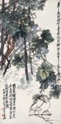 行至展廳四層,展覽進入了承前啟后的第三單元。吳昌碩的藝術,是19世紀末20世紀初上海這座新興都市與文化熔爐的產物。他以如椽“鐵筆”一掃清末畫壇柔靡細弱之風,賦予了大寫意花鳥畫雄強、古艷、渾厚的新氣象。齊白石雖未見過吳昌碩,但卻從他那里取來了“金石”與色彩兩把利斧,劈山引水,為已然固化的中國畫壇帶來又一生機。而他們又有所不同,吳昌碩的蒼拙是書卷氣的,指向金石碑碣的斑駁歷史感;齊白石的蒼拙則充滿泥土的芬芳與生命的趣味,指向鮮活生動的現實人間。