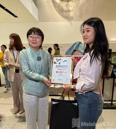 10月1日,上海浦東美術館迎來了2025年第100萬名幸運觀眾,這也是浦東美術館首次一年觀眾破百萬人次。這名幸運觀眾是來自深圳的王佩瑋,浦東美術館館長李旻坤為她送上了紀念證書。