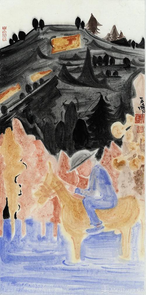其次,王鵬的繪畫是從傳統工筆畫法向外延展的一種審美。其技法與色彩力求在表達時代的過程中,完善繪畫傳統技術的文化外延?;蛘哒f,王鵬努力在追求“古為今用”的藝術原則中,昭示著藝術新語言構成是有技術方法可循的——寫意性工筆就是一種方法論中的思想體系,很大程度上能適應時代發展,充分發揮中國畫精神。