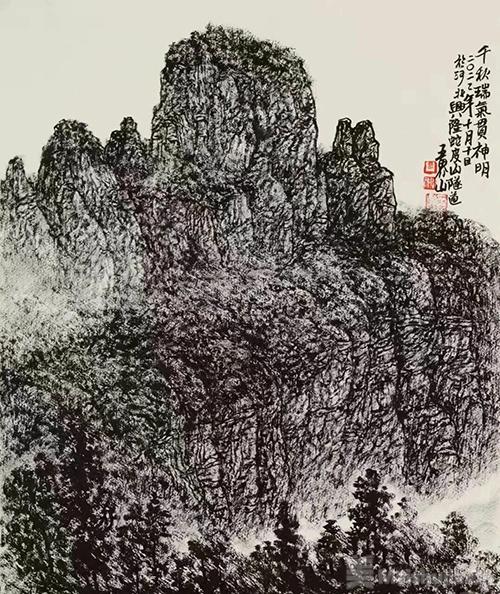 從品牌建構的視角審視,王界山的焦墨藝術早已超越個體創作的范疇,成為一個兼具傳統根基、時代精神與文化價值的藝術符號。他以焦墨為骨,撐起傳統筆墨的現代脊梁;以文心為魂,賦予自然山水人文溫度;以實踐為徑,打通傳統與當代的溝通脈絡。這種“立骨見魂、守正創新”的藝術品牌特質,使其在當代畫壇獨樹一幟。正如藝術發展的永恒命題,王界山的焦墨探索仍在繼續,而其藝術品牌所蘊含的傳統智慧與現代精神,必將為中國山水畫的未來發展提供持久的啟示與力量。