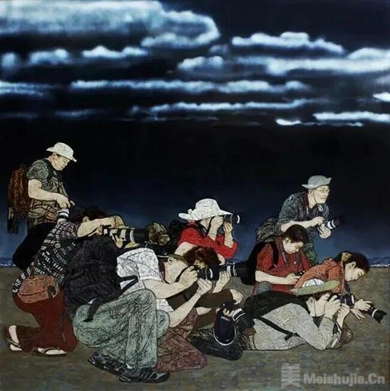 玉惠弱質纖纖,而志存高遠。漆畫之道,工序繁復,體力腦力并重,然其樂此不疲,如漆似膠。每遇大展,必全力以赴,反復調整至最后一刻,唯恐有失。其創作常經歷“善破善立”之過程,堆漆堆色之后,罩漆研磨,形體隱而復現,終成妙境。