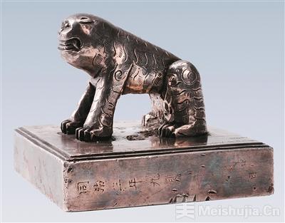 在蚌埠歷史文化陳列中,有一枚清同治三年(1864年)江南長江水師提督銀印,是研究清代軍事史的重要文物。該印長10.8厘米,寬10.8厘米,高9.1厘米,重3.75千克。印面為正方形,虎形鈕?;⒆鞫拙衢L嘯狀,通身雕刻獸毛紋,頭刻一“王”字。清代銀質官印等級較高、傳世較少,此印1974年入藏蚌埠市博物館,被評為國家一級文物。