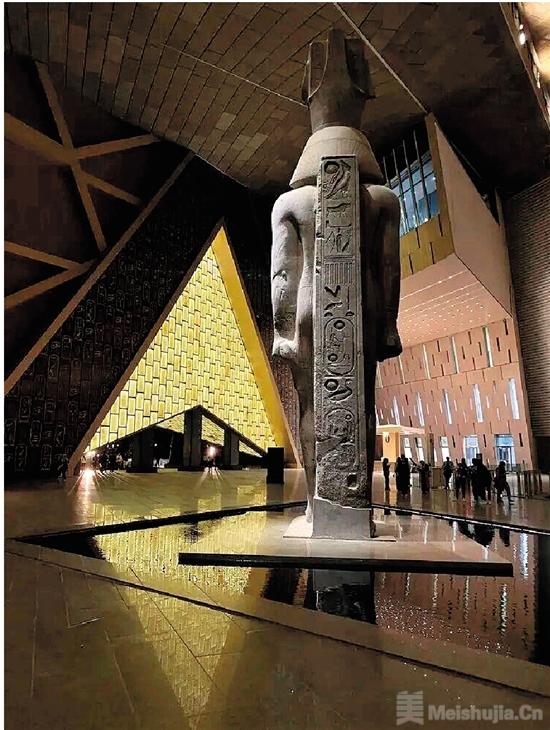 由于1902年在開羅市中心建成的埃及博物館在空間和功能上不能滿足展覽需求,埃及政府于本世紀初在開羅西南約5公里處的吉薩金字塔景區附近興建大埃及博物館,后因資金、政治、疫情等挑戰,歷時20多年才建成開館。大埃及博物館由 Heneghan Peng 建筑事務所設計,距離吉薩金字塔僅1公里多。這座龐大的建筑群坐落在開羅邊緣的沙漠高原上,是連接世界最悠久文明的橋梁。大埃及博物館占地約50萬平方米,館藏文物超過10萬件,首次完整集中展示古埃及法老圖坦卡蒙的5992件隨葬品,此外還展出修復后的胡夫太陽船、古埃及法老拉美西斯二世巨像等文物。