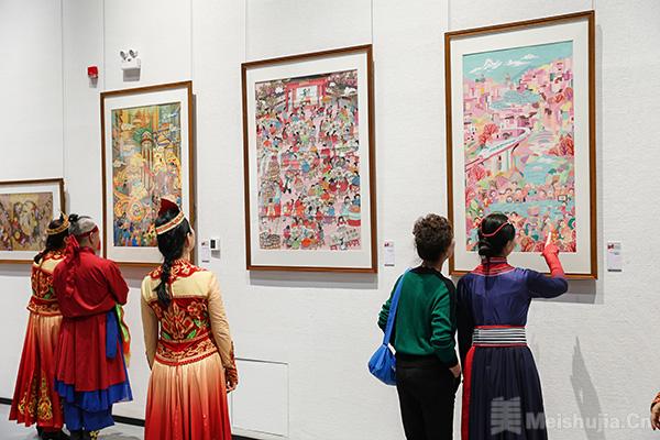 觀眾在參觀農民畫 內蒙古自治區文化館供圖