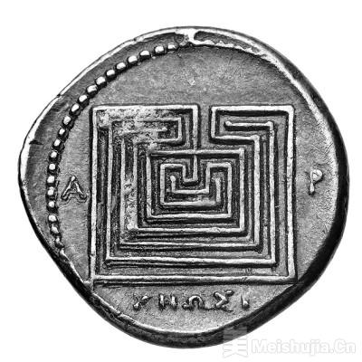 ??事實上,對立的秩序化原則,也恰好暗合現實中克諾索斯迷宮的線路走向??死锾貚u的古老錢幣上保留了迷宮的早期圖像。這種多圈環繞的形式看上去非常復雜,不過試著玩一下這個迷宮,很容易發現路線設計上“右左交替”的特殊編排規律。進入入口,路線先向右繞,繞到與入口平行對應的位置旋即折返左繞,左繞到拐點又折返右繞,如此“左右交替”循環四次,直至中心。顯然,這種左繞、右繞的方向對立構成了對稱,同時,通過左右來回折返的層層循環又構成了旋轉??梢姡詫m所展現的多圈環形結構,本質上其實就是對立的循環(即對立的秩序化)。
