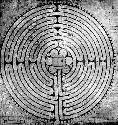 ??有趣的是,如果將這首迷宮音樂與法國沙特爾大教堂迷宮進行對比,就會驚奇地發現:二者的構造簡直如出一轍。沙特爾大教堂迷宮由11圈同心圓構成,從入口進入后,路徑就在不停地折返,它時而遠離中心,時而又靠近中心,令人產生一種方向的迷茫感。經歷一番暈頭轉向之后,才終于能夠到達迷宮中心——六瓣玫瑰花結。這個到達中心的艱辛歷程其實和《和聲小迷宮》呈示部和展開部向我們展示的非常相似。而到達中心后,走出迷宮也只能是原路返回,不過此時的心情一定輕松愉快很多,沒有剛開始的緊張不安,這也和《和聲小迷宮》再現部向我們展示的一樣。