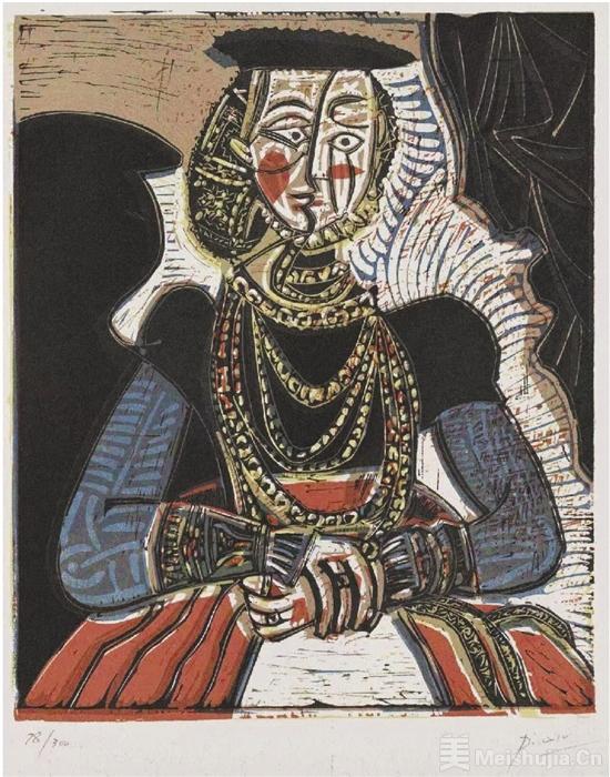 巴勃羅·畢加索 依據盧卡斯·克拉納赫作品創作的女子肖像 27×22cm 麻膠版 1962年